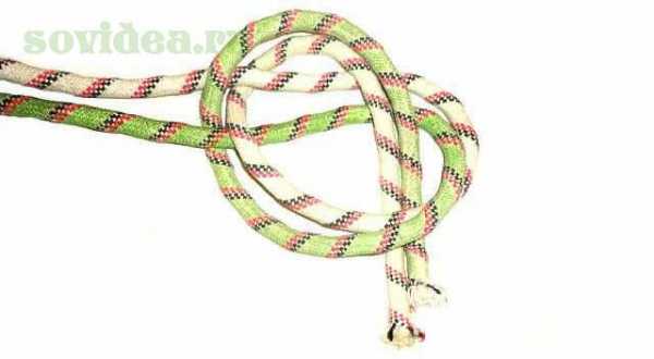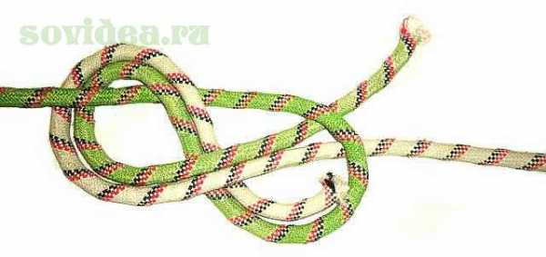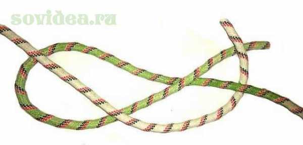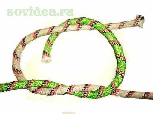 - Второй конец провести в петлю по направлению сверху вниз, обогнуть первый канат и вывести наружу.