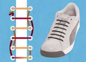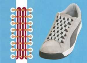 - Шнуруем кроссовки способом «Лесенка».
