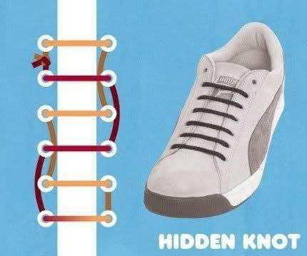 2. Стильная и аккуратная шнуровка «Скрытый узел». Вы можете научить ребенка завязывать шнурки этим способом, чтобы они не развязывались и не мешали при ходьбе.