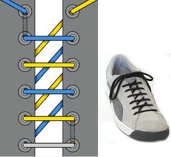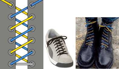 — левый и правый ботинки шнуруют зеркальным образом.