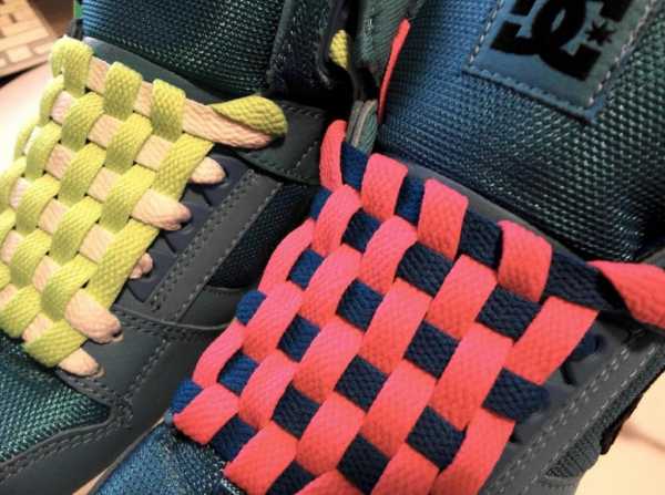 5. А вот еще один способ, как завязывать шнурки прикольно, особенно, если вы будете использовать разные цвета. Посмотрите на фото. Начните снизу, выпускайте шнурки наверх и переплетайте их между собой. Постепенно двигайтесь к верхнему концу.