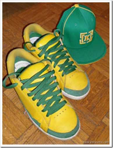 — один шнурок (желтого цвета) накрест выходит снизу вверх