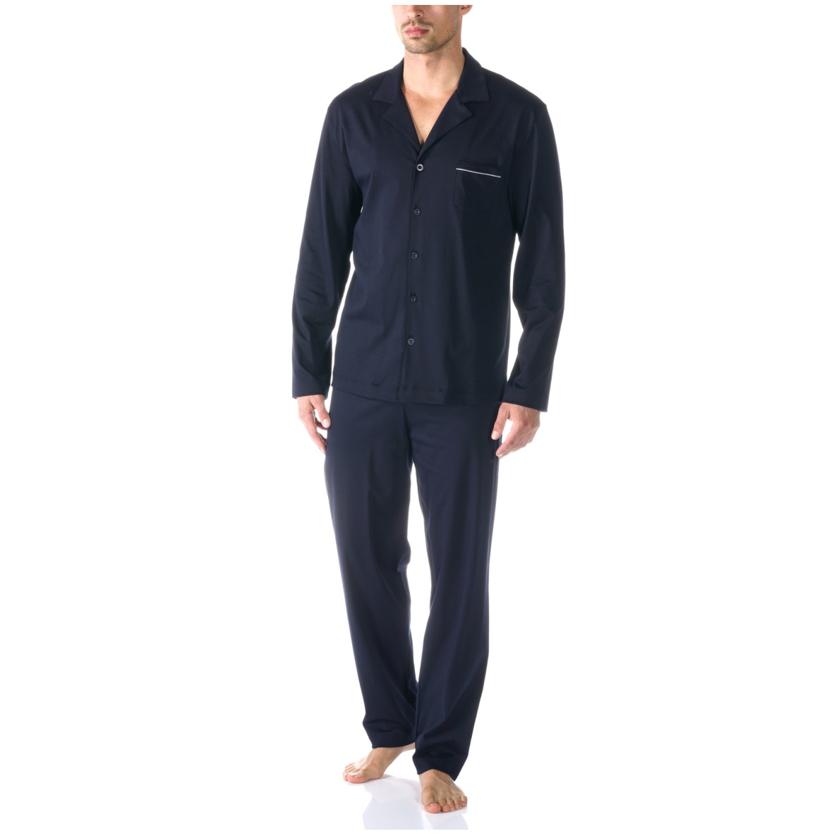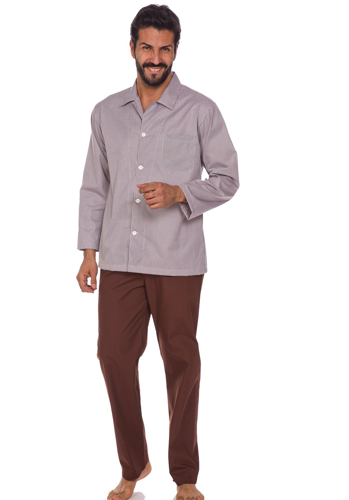 Как уже говорилось, это самая популярная форма мужской пижамы. Это рубашка, которая застегивается спереди при помощи пуговиц, часто имеет отворот и имеет подходящую пару брюки. Классические мужские пижамы изготавливают, как правило, из хлопка, льна, шелка, атласа или полиэстера. Более аристократичные личности часто украшают нагрудный карман пижамы семейным гербом или инициалами.
