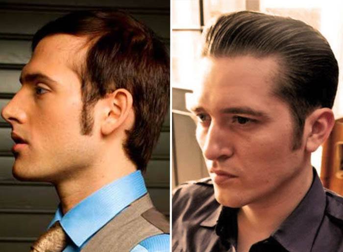 Нельзя назвать брутальными мужские ретро стрижки. Они имеют средней длины челку и большую вариативность укладок – от «взбитого» закрученного стиля Элвиса до «зализанного» стайлингом «клерка с пенсне на носу» из 20-х годов прошлого столетия. Сегодня технология стрижки осталась прежней, но вот способы укладки приобрели новое звучание.
