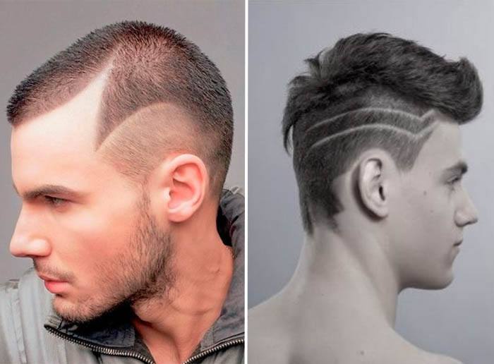 С появлением более утонченных насадок для бритья волос и стрижки, возможности в барбершопах увеличились в разы. Сегодня мастера своего дела предлагают парням не просто выбритые наголо виски, а изображение различных узоров, в том числе и на затылке, которые на контрасте с темными волосами смотрятся очень эффектно и обращают на себя внимание. Данную мужскую креативную стрижку или прическу на короткий волос не нужно укладывать, а эффект в обществе ошемляющий.