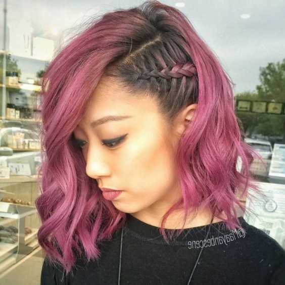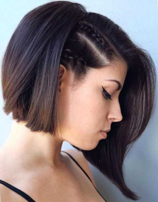 Модный тренд – косой пробор, который выделяют одной или несколькими маленькими косичками. Одну сторону состригают максимально коротко, а на другой пряди оставляют слегка удлиненными.