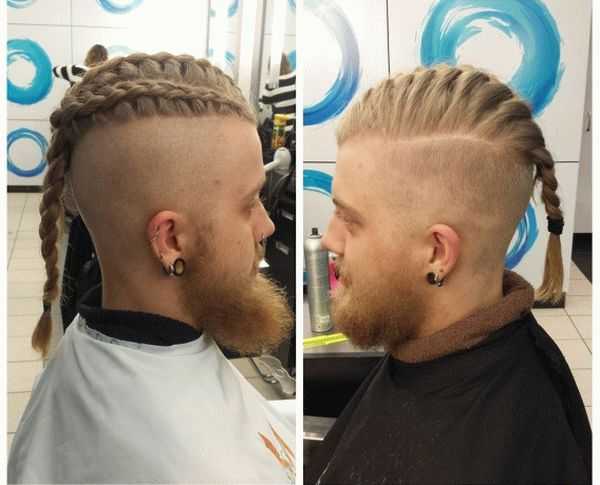Можно сделать короткую стрижку, оставив одну длинную прядь, которую и заплетают. В моду вернулись бороды: они хорошо сочетаются с косами. Главное, придерживаться правила: чем длиннее волосы, тем короче делают бороду.