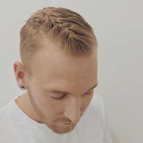 Это самая легкая в исполнении мужская укладка. По внешнему виду напоминает «колосок». Для ее создания берут тонкие пряди у самых корней, которые переплетают. Французскую косу выполняют как на затылке, так и на теменной области. Или делают ее по всей голове. Можно не расплетать такую косичку в течение недели.