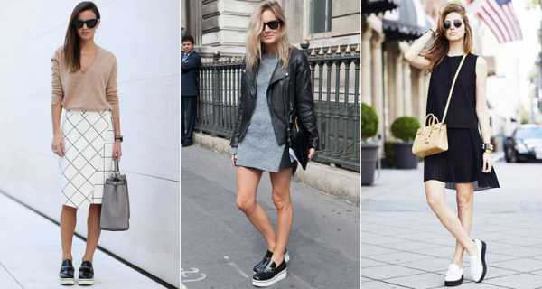 Макси, мини и миди юбка будет прекрасно смотреться с данным видом обуви. Так вы обозначите свою женственность не в ущерб собственному комфорту.