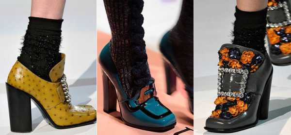 - с каблуком, обычно широким и низким, но иногда и довольно высоким;