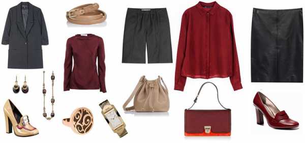 Черные брюки – это не панацея, конечно. Заменить их вполне просто на темно-зеленые (ближе к благородному изумрудному), бордовые или же вишневые. К таким подойдут не только черные, но темно-сливовые или темно-коричневые лоферы, а заправить в них можно не только рубашку, но и темно-серый топ с необычным принтом, а завершить все – курткой хаки.