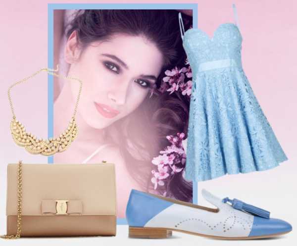 - Всевозможные платья в стиле бэби долл прекрасно выдержат соседство с лоферами в пастельных оттенках с милым декором в виде аккуратных кисточек или бантиков.
