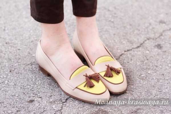 Цвет лоферов такой модели бывает самым разным, но наиболее удачно смотрятся классические оттенки бежевого, белого или черного цветов.