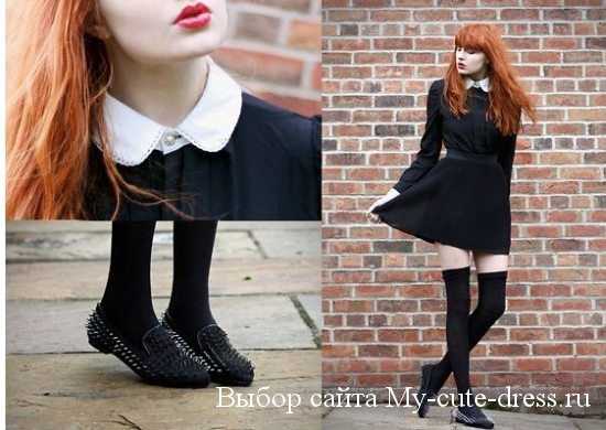 Не говоря уже о том, что стройность ноги можно подчеркнуть контрастными гольфами.
