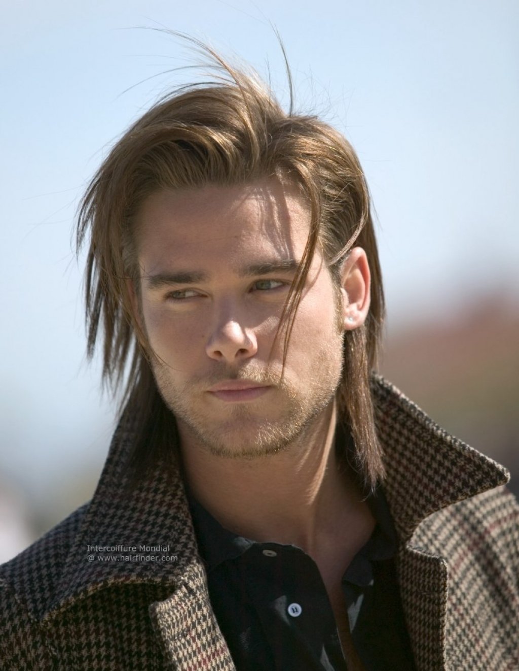 Плотная удлиненная челка — прерогатива преимущественно молодых мужчин. Прически на длинные прямые волосы без челки подходят мужчинам средних и старших возрастных категорий.