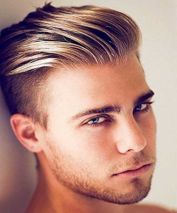 Лучше всего укладываются на бок стрижки со средней длиной волос.Чтобы добавить образу уникальности молодым людям с квадратным лицом можно добавить узоры на затылочной или височной зоне. От длинных стрижек лучше изначально отказаться их сложно уложить и поддерживать. При этом длинные пряди добавляют объема тяжелому подбородку.