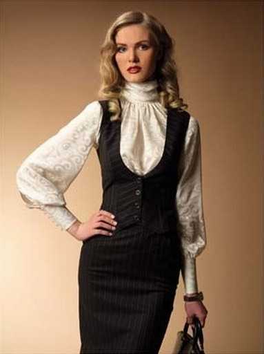 Блузка типа мужской сорочки с отложным воротником и умеренным вырезом является ядром классического стиля. Однако сегодня классический деловой костюм может быть дополнен водолазкой, топом или тонким спортивным джемпером, что более подходит деловому, а не классическому стилю в традиционном его понимании.