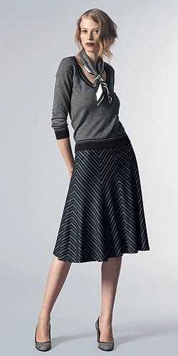 Еще одной деталью гардероба, обязательной для классики является юбка. Но не каждая юбка может быть отнесена к классическому варианту. В идеале это должна быть прямая или чуть зауженная книзу юбка-футляр, длиной макси или миди. Наиболее приемлемым вариантом длины служит длина до середины коленной чашечки. Допустимо разбавлять внешнюю строгость наличием неброских пуговиц или оригинального пояса, который при этом должен сочетаться с общей выбранной стилистикой. Чаще всего для пошива юбок применяется костюмная ткань.