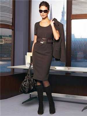 - Платье – прямое или приталенное, сшитое по фигуре, без обтягивания и свободного прилегания. В качестве других вариантов можно рассмотреть модель в виде футляра, А-образного силуэта с неглубоким вырезом или на тонких бретелях.