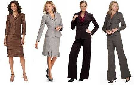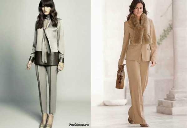 Что касается выбора цвета, то на зиму желательно выбирать темный костюм нейтрального серого или синего оттенка. Неплохо выглядят принты в виде тонкой вертикальной полосы или «елочки». В летний период уместными будут светлые цвета бежевый, белый, кофейный.