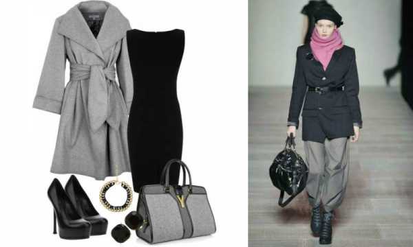- Верхняя одежда – пальто, плащи прямые или приталенные. Для отделки используют воротник с лацканами, клапаны на карманах, мягкий пояс.