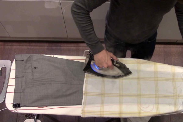 » вывернуть брюки наизнанку и, первым делом, прогладить штанины, область карманов и пояс, после чего вывернуть обратно на лицевую сторону;