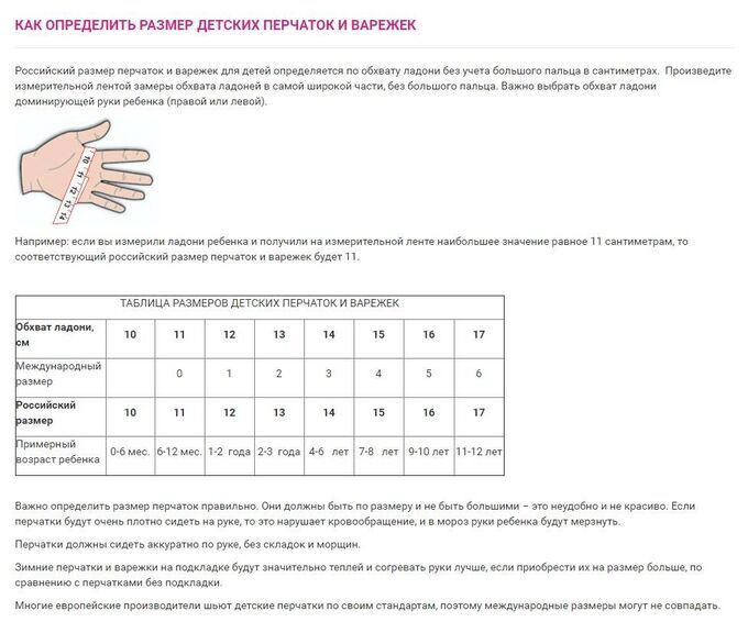 Важно знать свой размер руки, чтобы не ошибаться с выбором перчаток.