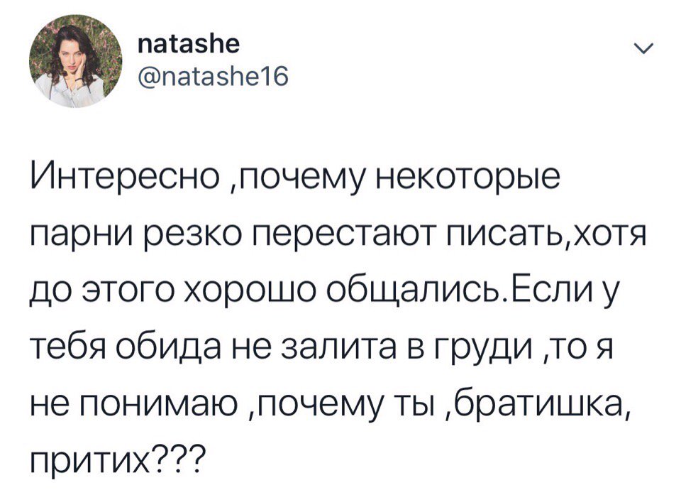 Мужчину могло оттолкнуть что-то в ваших вкусах, образе жизни или взглядах. Кто-то не видит будущего в отношениях с курящей девушкой. Для кого-то преградой будут даже минимальные порции алкоголя – бокал вина на праздник. А кто-то не понимает, как можно отказываться от мяса. Конечно, порядочнее будет написать и поставить девушку в известность о своем решении не продолжать отношения. Но мы живем в неидеальном мире – далеко не все в нем поступают по совести.