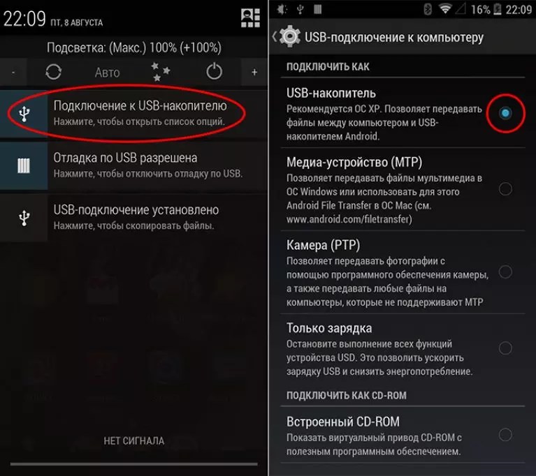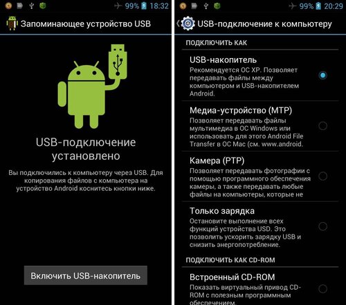 Настройки USB-подключения