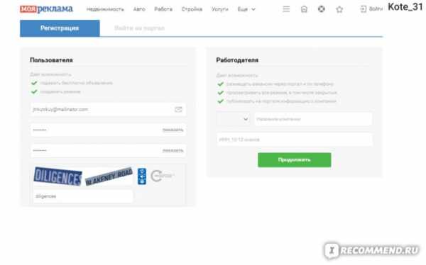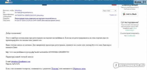 «Моя Реклама» высылает мне регистрационные данные на почтовый ящик.
