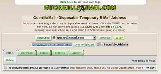 GuerrillaMail предлагает нам одноразовый, самоуничтожаемый временный адрес электронной почты для отправки и получения писем анонимно. Почта удаляется через один час после использования. Вам нужно только выбрать адрес электронной почты, при этом не требуется вводить никаких личных данных.