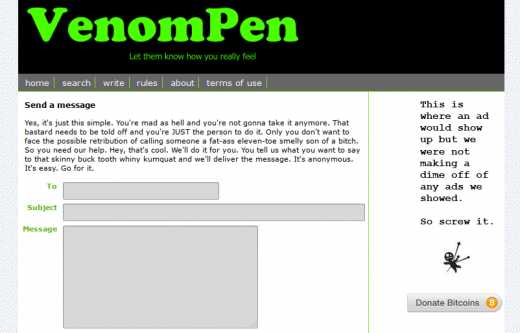 По заверениям создателей, этот сайт создан для того, чтобы дать людям, которые опасаются за последствия, возможность донести до адресата свои недовольства или жалобу. Форма отправки очень простая и не требует регистрации, однако все письма проходят модерацию на наличие незаконного контента.