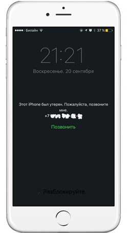 Это сообщение появится на заблокированном экране айфона, и нашедший его человек может даже совершить звонок по указанному номеру.