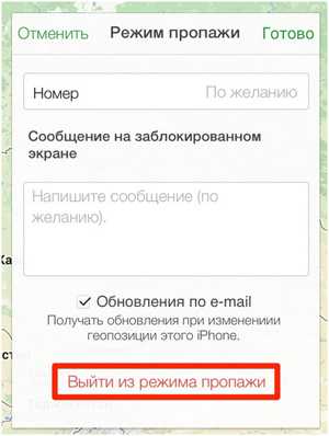 Также блокировка может быть снята удалённо, с помощью того же меню в iCloud, повторив описанный выше путь, до пункта введения контактного номера и сообщения. Внизу будет предложение об отключении.