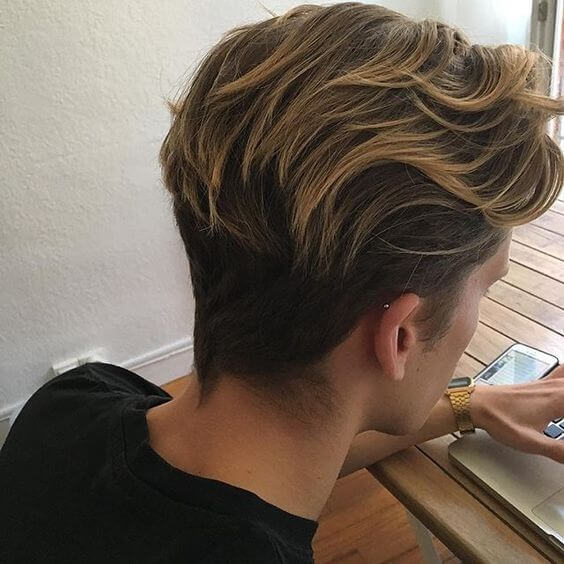 Эта ультрасовременная молодежная прическа предполагает короткие бока и виски, удлиненную затылочную часть.
