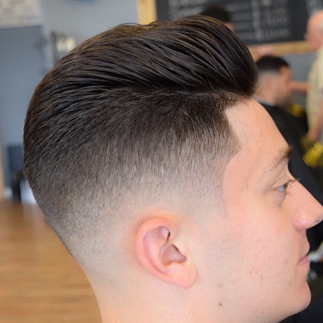 Прическа очень популярна среди молодых парней и взрослых мужчин. При ее создании мастер выбривает виски и затылочную часть при помощи машинки. Только выбритые волосы должны быть четко одной длины. Длина тех прядей, что остались наверху, должна быть не более 10 см. Из них будет сформирована челка, которая должна быть короче основной длины.
