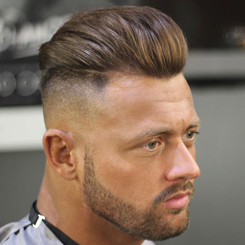 Помпурная прическа в сочетании с бородой и низкими блеклыми сторонами придаст любому мужчине настроение. Объедините его с серыми бликами и получите мгновенное уважение.