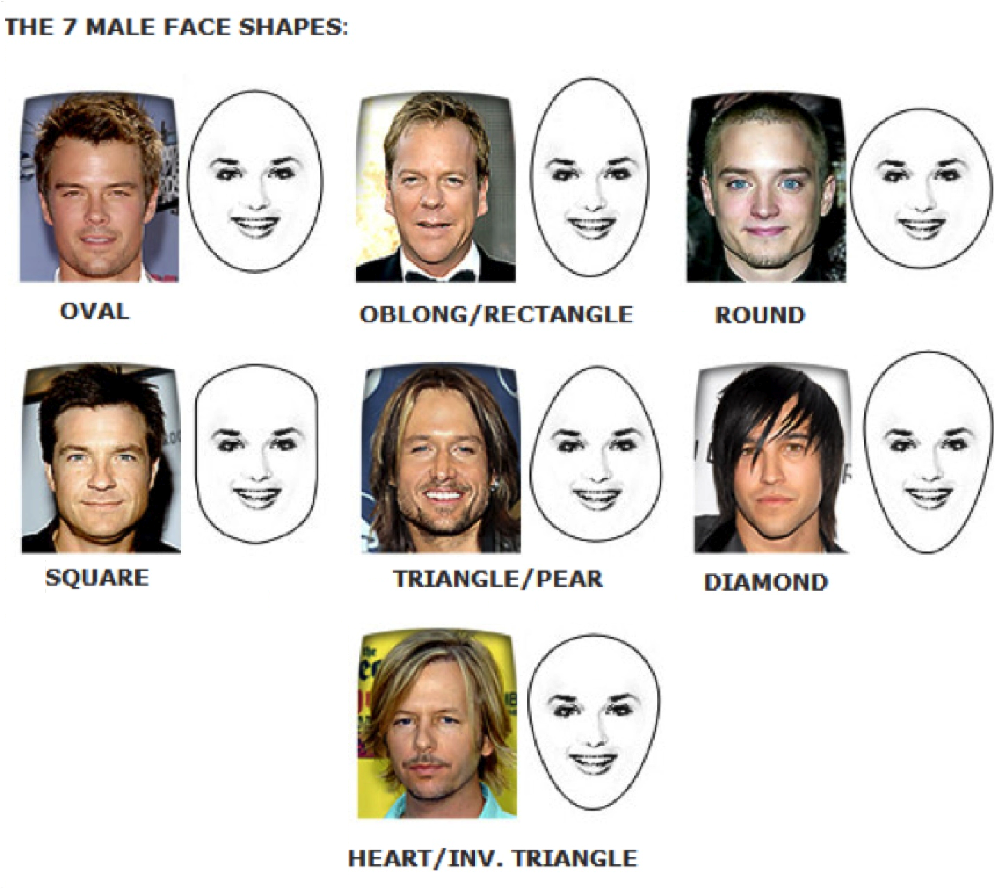 Идеалом считается овальная форма, для неё подобрать мужскую стрижку не составит труда, ведь любой выбор не будет промахом. Отлично, скорее всего перед вами счастливый обладатель идеального типа! Прежде чем сделать окончательный вывод, посмотрите внимательно: подбородок должен быть с кругловатым очертанием, слегка зауженный к кончику. Лоб будет шире обычного. Большие рот, нос либо глаза при таком лике не присутствуют. Если всё перечисленное подходит под описание, то поздравляем, вы видите перед собой счастливчика! Экспериментируйте с ним в своё удовольствие!