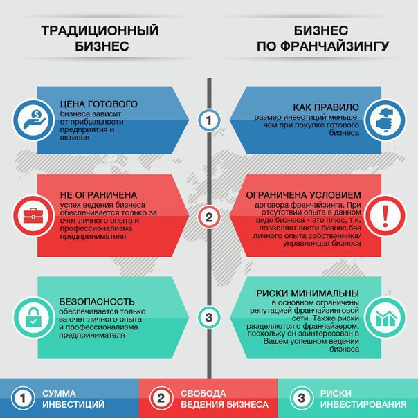 Для Центральной компании есть также свои плюсы. Они продают бренд и свои технологии, тем самым распространяя свое имя в прочих странах. При этом развитием бизнеса занимается опытный франчайзи, который имеет опыт и знает условия ведения дел конкретной страны.
