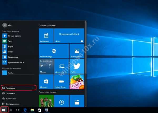 - В меню «Пуск» находим «Проводник».
