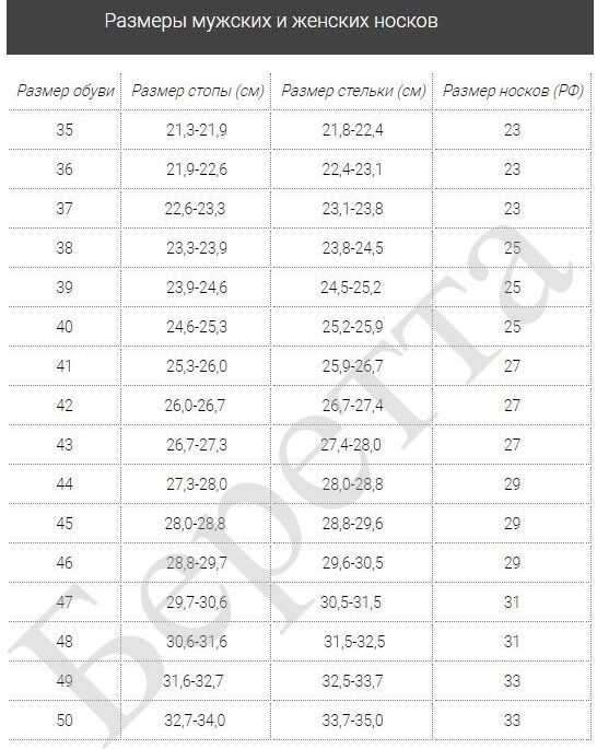 Размер носков мужских таблица