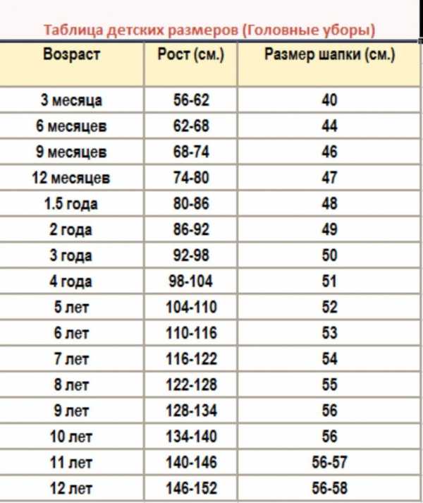 Материалы для того, чтобы правильно определить размеры детских шапок