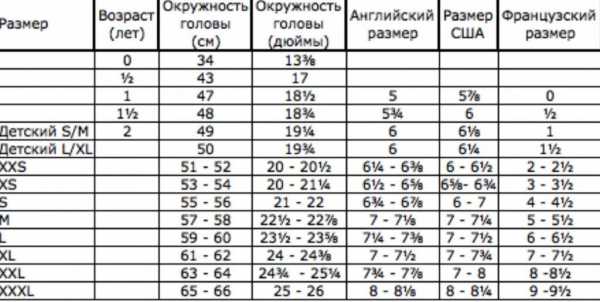 Примерка – самый лучший способ подобрать правильный размер головного убора для детей. Но если она по разным причинам невозможна (например, при покупке вещей онлайн), приведенная таблица поможет избежать ошибки.