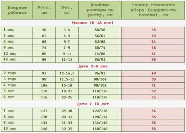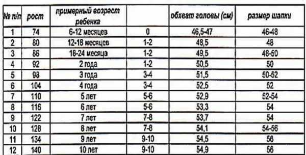 поможет определить, какое значение обхвата головы характерно для каждого возраста.