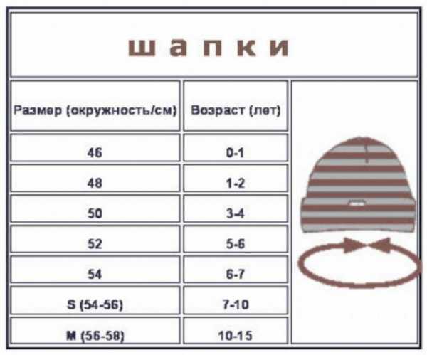 | Таблица размеров детских шапок и чепчиков для мальчиков |