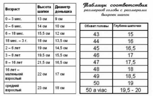 | Таблица размеров детских шапок и чепчиков для девочек |
