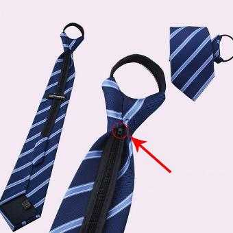 Галстук на молнии впервые начали использовать яхтсмены. У них не было времени, чтобы завязывать этот атрибут, поэтому они пришили на него сзади молнию. Этот аксессуар обычно носят офисные работники. Также подойдет он школьнику для ежедневной носки.