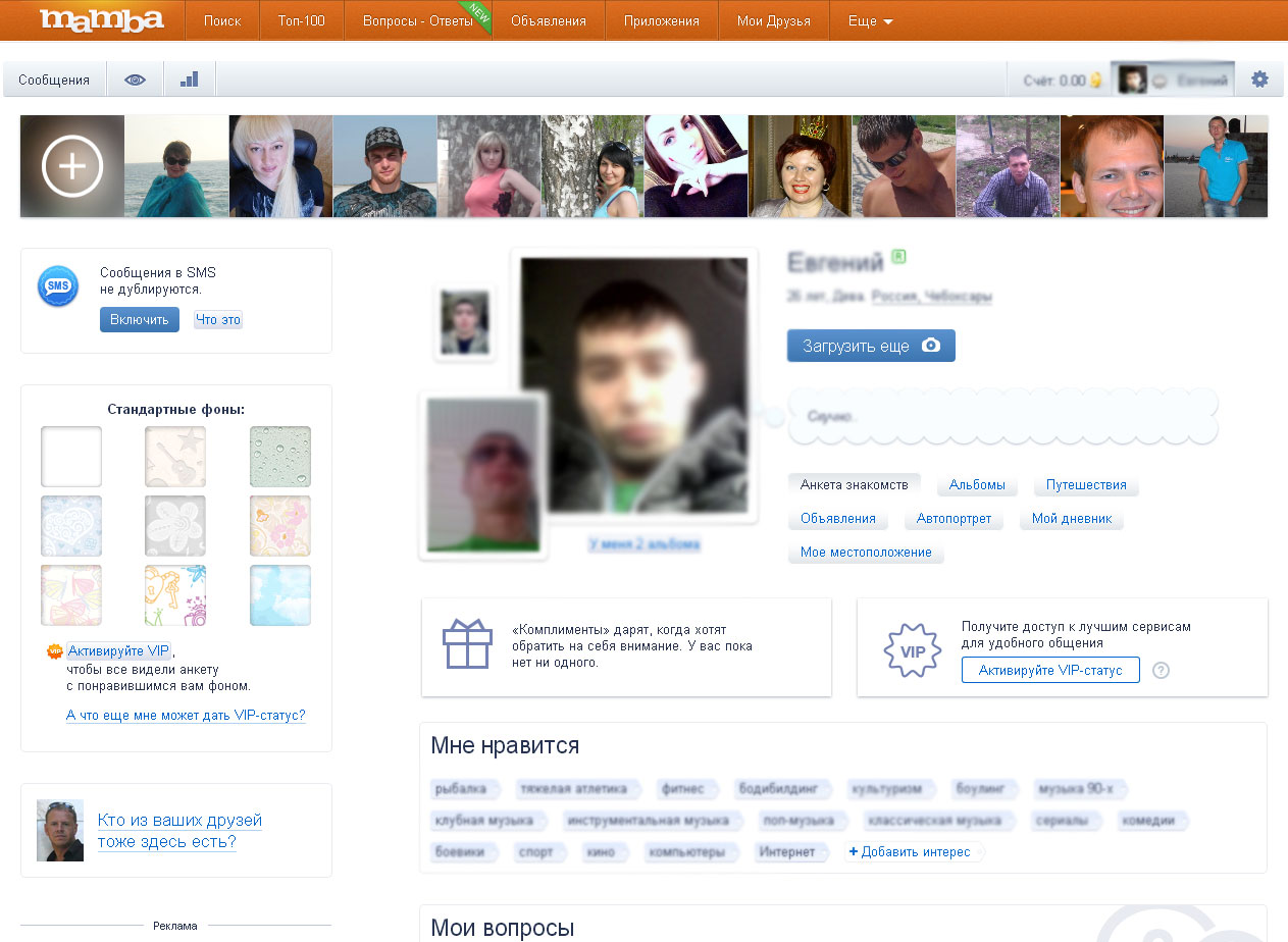 Есть просто развлекательные, скажем, покер-румы. Если скучно сидеть и ждать ответов на сообщения от других пользователей, можно перекинуться с кем-нибудь в картишки. - Мои друзья. Здесь можно узнать, кто из Ваших знакомых уже зарегистрирован на Мамбе. Для этого необходимо в специальные окошки ввести адрес электронной почты и пароль.