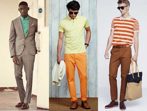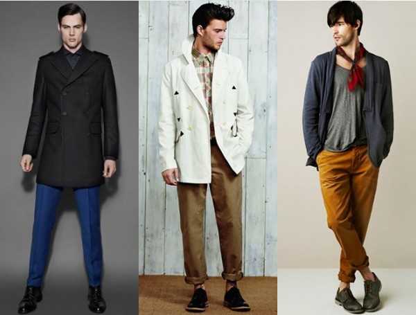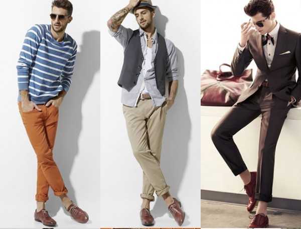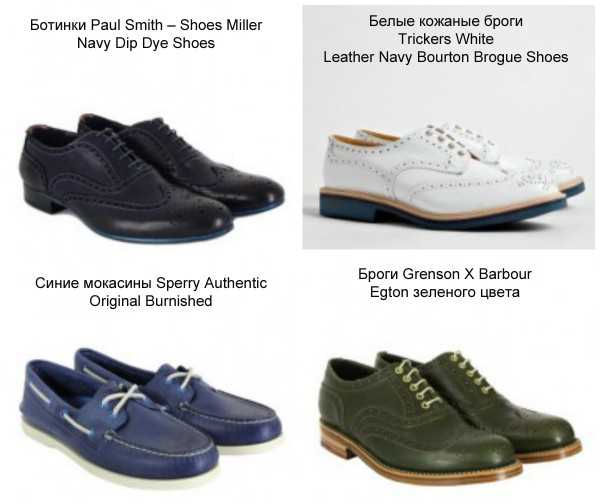 - Если Вы сомневаетесь, соблюдайте «тональность»: Наконец, вопрос о том, как подчеркнуть индивидуальность за счет цветной обуви, встал достаточно остро в индустрии мужской обуви в нынешнем сезоне. Последние несколько недель одежда в тон активно обсуждалась на форуме FashionBeans. В частности, вопрос о том, что может быть проще, чем сочетать ботинки смелого синего цвета с джинсами цвета индиго или темно-синими брюками-чинос [внизу справа]. Они подойдут под одежду любого цвета, а с бежевыми ботинками отлично будут сочетаться коричневые брюки или брюки вкусного цвета крем-брюле, а зеленые ботинки отлично впишутся под брюки зеленого бутылочного стекла.