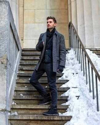 Белая классическая рубашка СохранитьУдалитьСочетание темно-серого плаща и черных джинсов может стать превосходным офисным луком. В паре с этим луком наиболее выигрышно будут смотреться темно-серые кожаные ботинки.